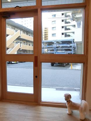大きなガラス窓からはトリミングの様子を覗けます。